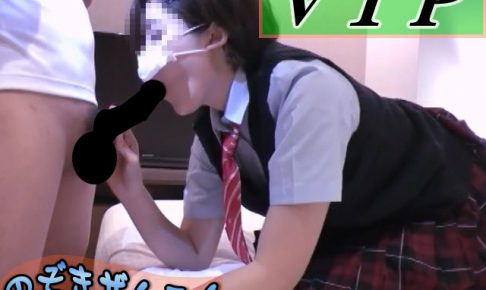 高そうなシティーホテルのベッドに制服姿の女の子が腰掛けて、舐め回すようにカメラで撮影されています。援助交際かもしれませんし、JKコスプレでのハメ撮りなのかは定かではありませんが、ショートカットの可愛い女の子なので、そこは…